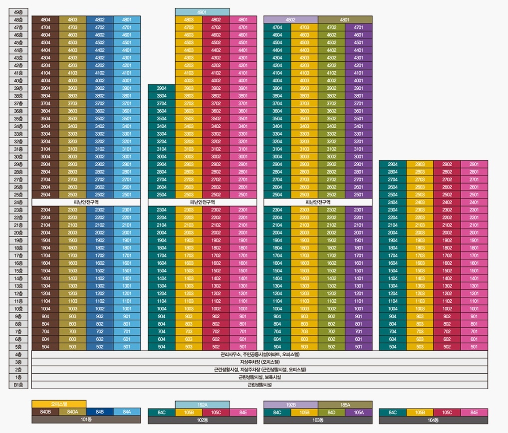 아파트 520세대와 오피스텔 86실로 구성된 대규모 복합 단지입니다.